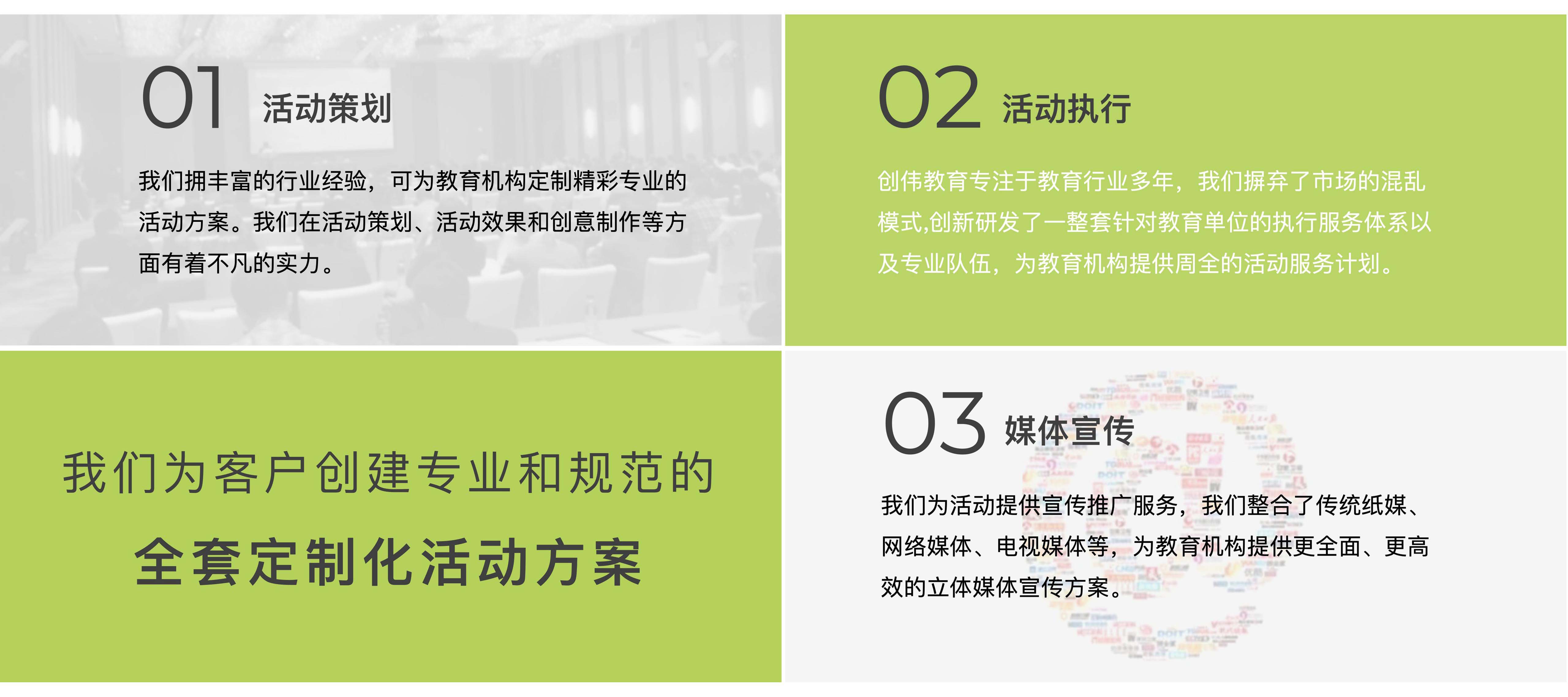 創(chuàng)偉教育依托十余載的活動承辦經驗,在活動服務領域展現(xiàn)出顯著優(yōu)勢,致力于為客戶提供全方位、高品質的活動承辦服務。